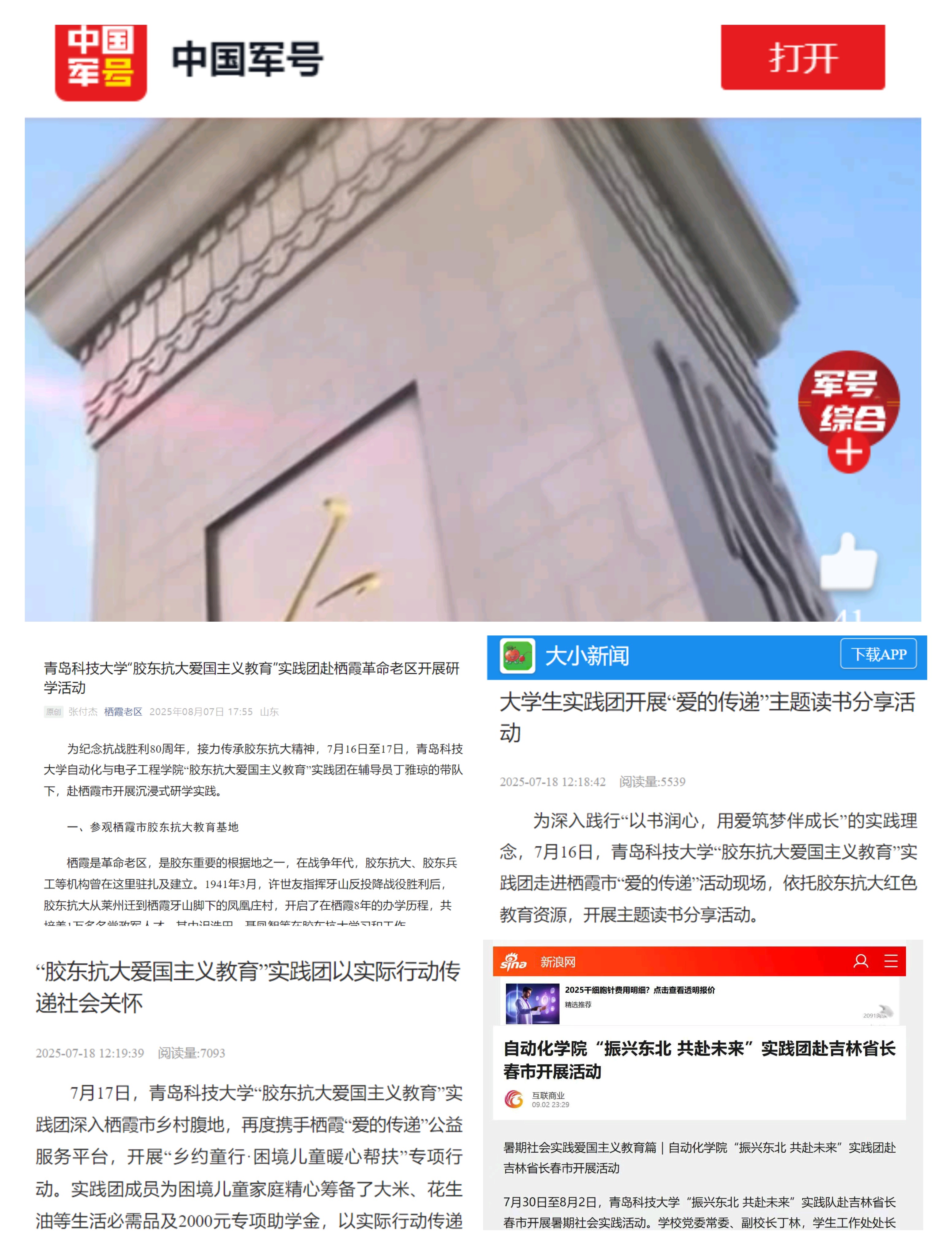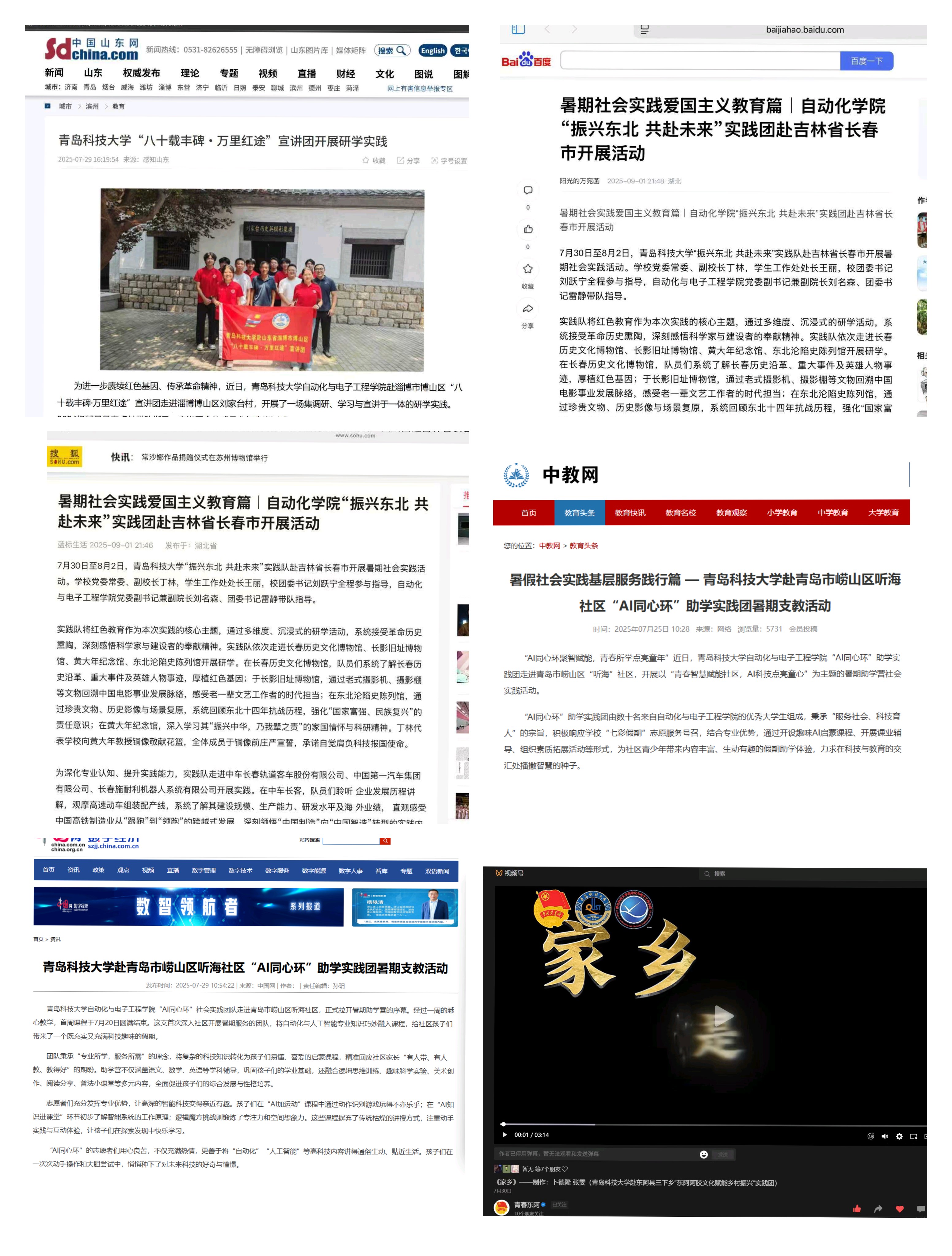 据悉,2025年暑假,学院精心组织了97支社会实践团队,深入青岛、烟台、威海、聊城、淄博、喀什、长春等全国20余个地区,累计开展各类实践活动300余次。活动紧密围绕纪念中国人民抗日战争暨世界反法西斯战争胜利80周年和“AI同心环”科技赋能乡村振兴两大核心主题展开。累计服务乡村儿童、企业员工、老年群体、社区居民近千人次,实践成果获得包括央视频、中国军号、山东新闻联播等国家级、省级官方媒体报道逾百次,总体阅读量突破12万次,有效扩大了社会影响,展现了青科大免费成人漫画