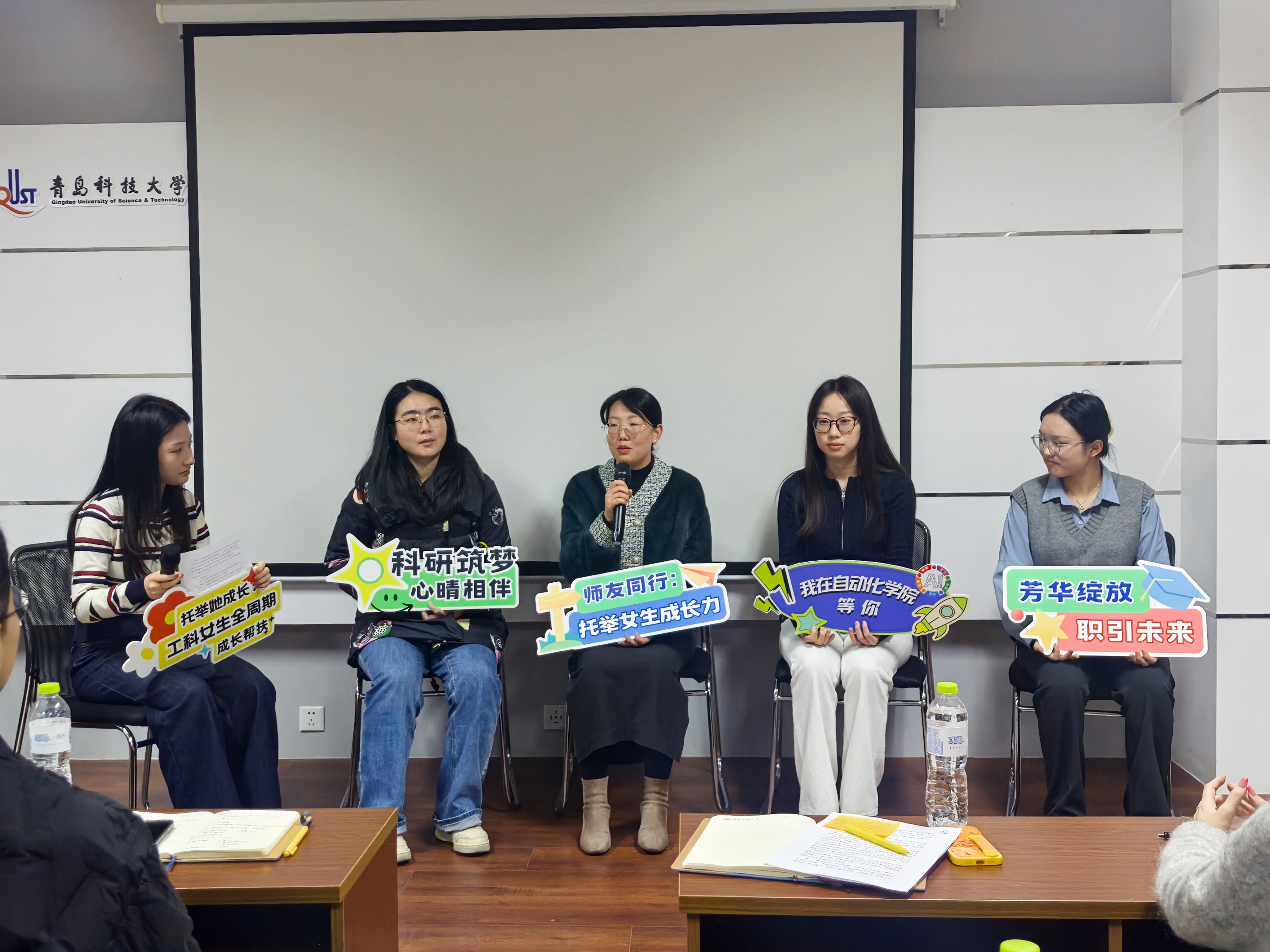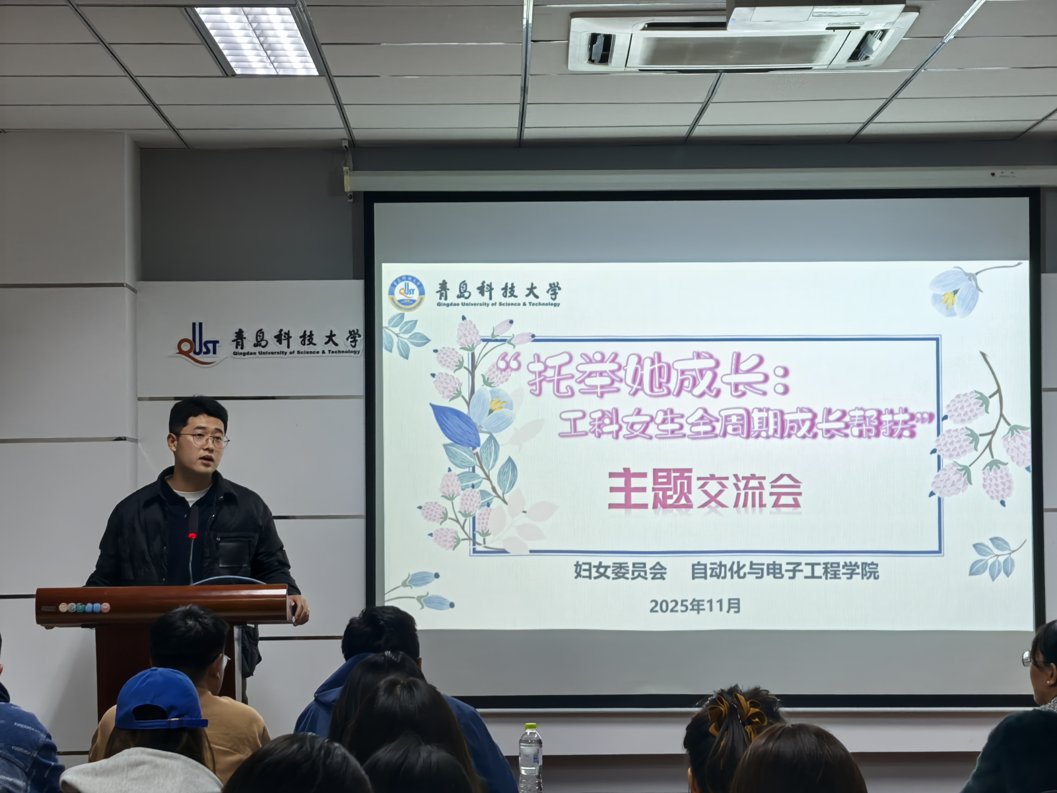 在学院楼410举办“托举她成长:工科女生全周期成长帮扶”主题交流会。会议采用宣讲和座谈会相结合的形式,邀请负责学院就业职业规划工作的徐文丽老师以及三位优秀研究生进行分享,吸引了来自不同学院的百余名女生参加,会议由学院团委副书记兼学工办副主任张郁浩主持。