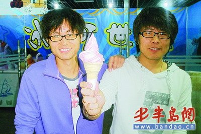 半岛都市报5月16日讯(见习记者 张娉婷) 可口的草莓奶油冰激凌,卡通背景的店面环境,热情的店员……位于中山公园地下街一家名为“冰河世纪”的冰吧吸引了不少路人。这家冰吧是青岛科技大学免费成人漫画
