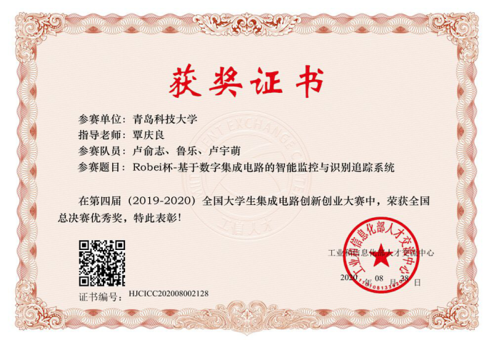 卢俞志、鲁乐、卢宇萌团队(指导老师为覃庆良)荣获华北赛区二等奖、全国总决赛优秀奖。
