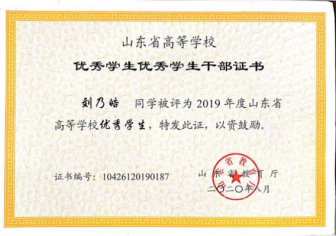 在青岛科技大学学习的这近四年的时光中,刘乃皓同时担任了多项职务,从大一的学生会干事到后来的组织部党员先锋岗岗长、心协会长,无论是在学院还是学校,无论是在大一还是大四,他都坚持做好每一份老师安排的工作,坚持组织好每一场举办的活动,坚持服务好每一位有需要的同学。