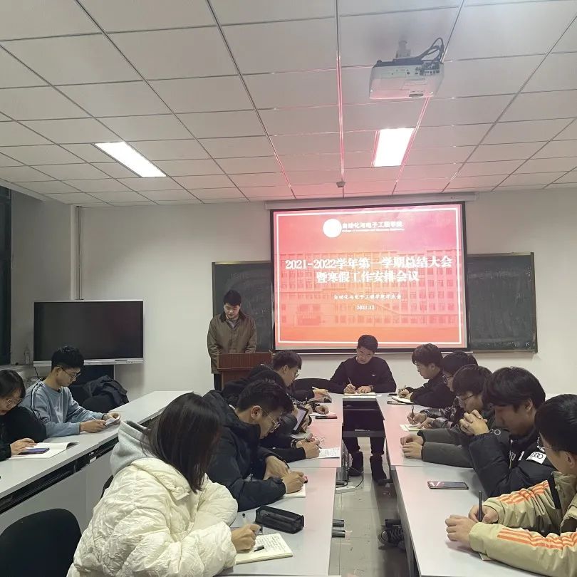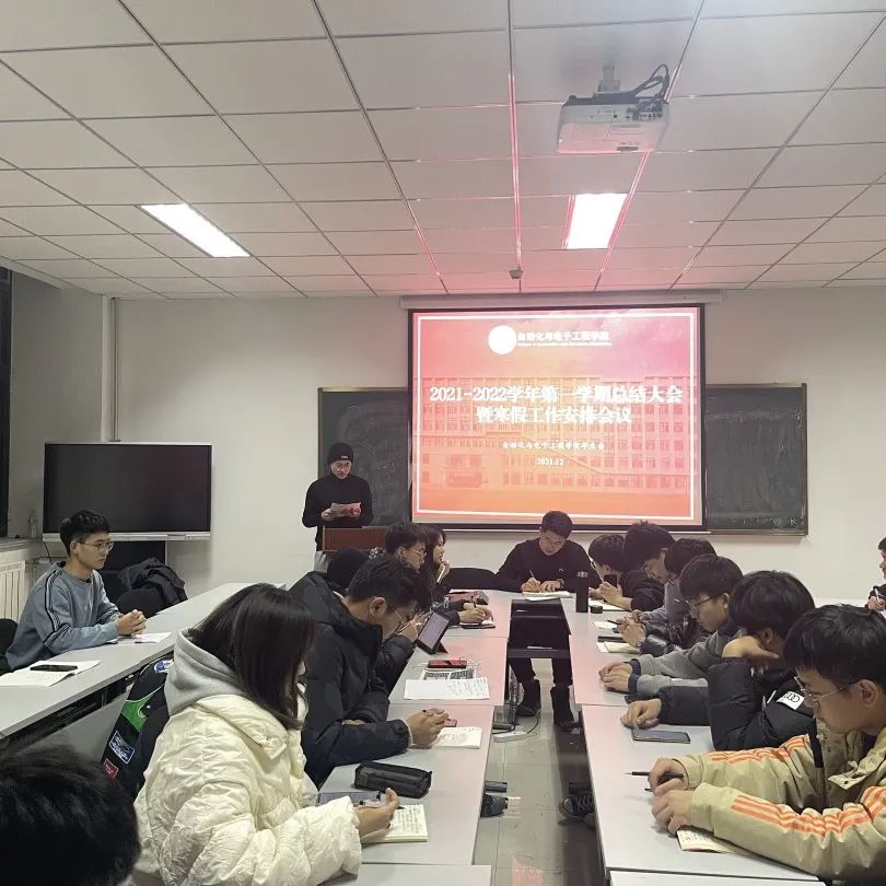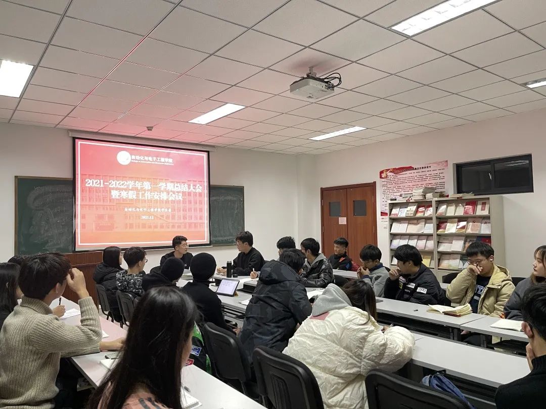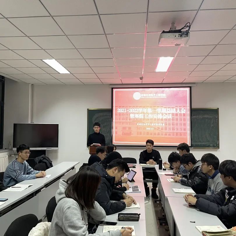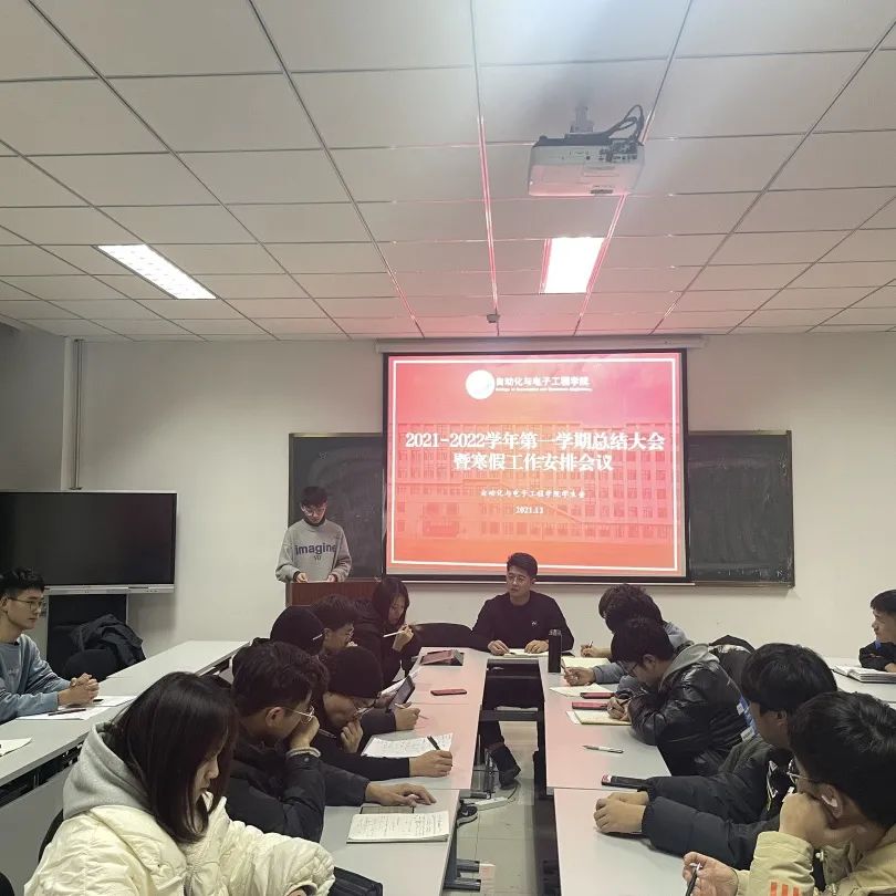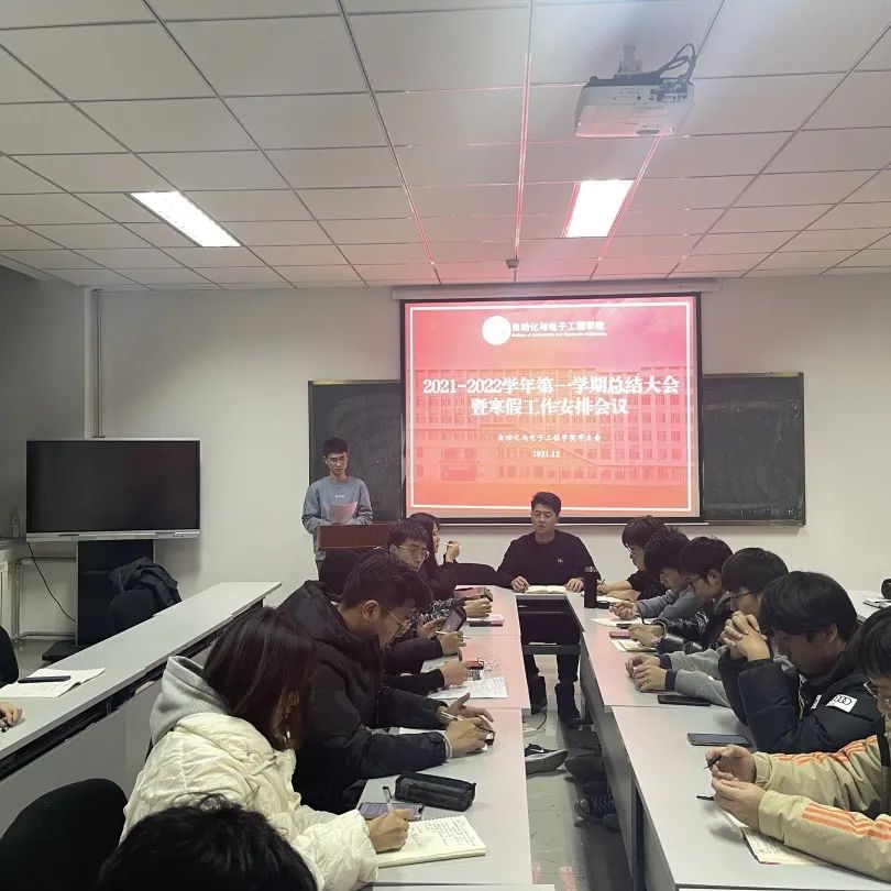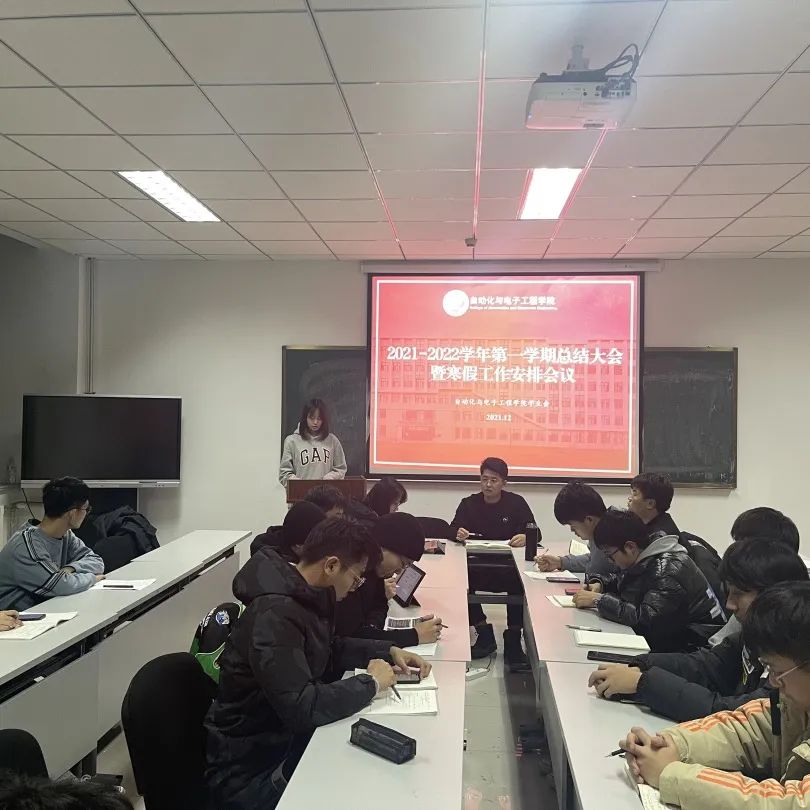 于2021年12月30日在学院楼406召开2021-2022学年第一学期学生会总结大会暨寒假工作安排会议。学院学生会指导老师张郁浩,第十八届学生会主席团、部长团成员参加会议。