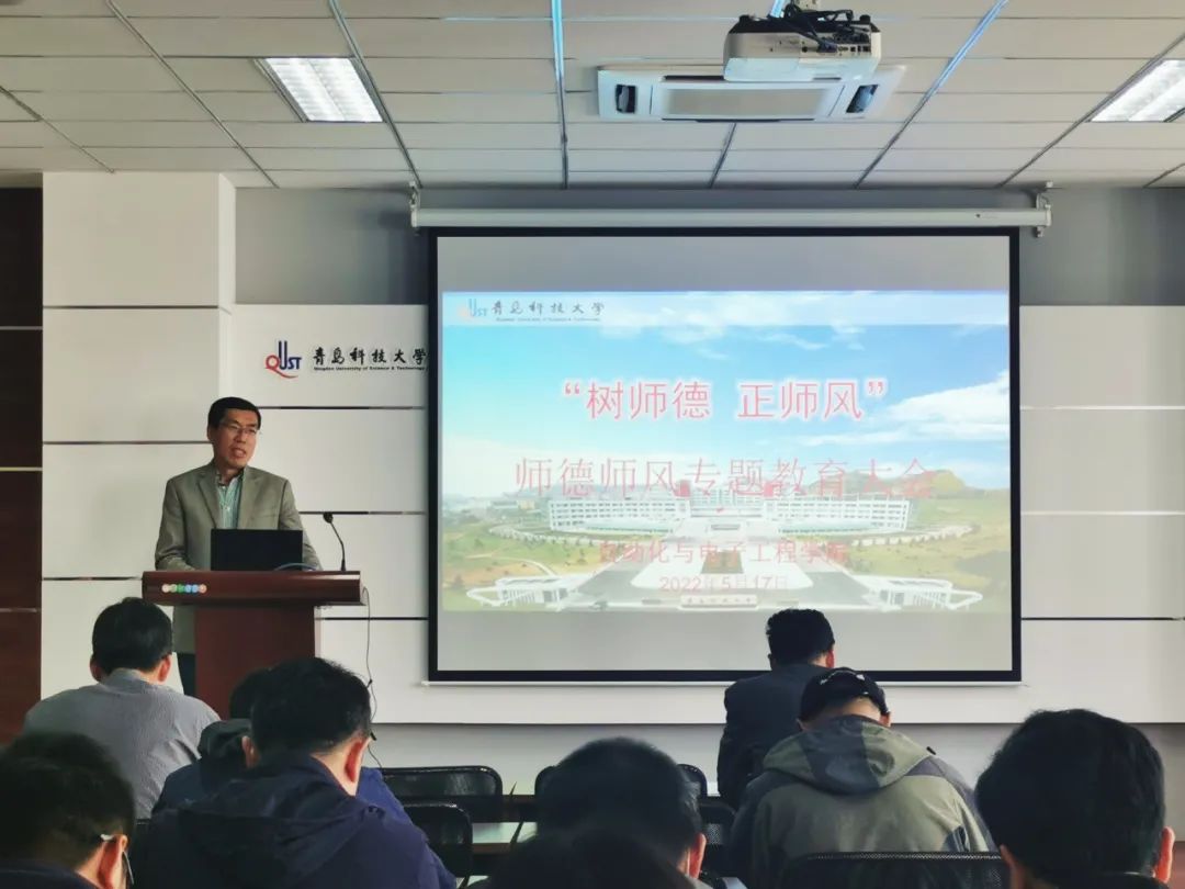 会上,学院党委书记吕德谦传达了《青岛科技大学“树师德 正师风”专项整治活动实施方案》的文件精神,结合近年来部分高校师德师风建设典型案例,强调全体教职工要统一思想,认真学习习近平总书记关于师德师风和教师队伍建设的系列重要讲话精神,始终把立德树人根本任务记在心上、扛在肩上,努力打造一支政治素质过硬、业务能力精湛、育人水平高超的新时代高素质的教师队伍。与会教职工现场签订《青岛科技大学教师师德承诺书》。
