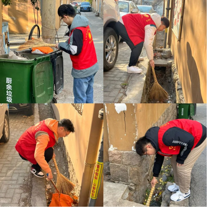 上午九点,志愿者们抵达少山路社区,各自使用扫帚、铲子、垃圾袋等清洁工具,充分发扬“不怕苦、不怕脏、不怕累”的精神,认真打扫每个角落,对小区地面、水沟进行地毯式清洁,清理完毕后,将树叶、纸屑、烟头等垃圾分类处理,使社区环境焕然一新。