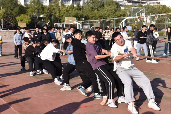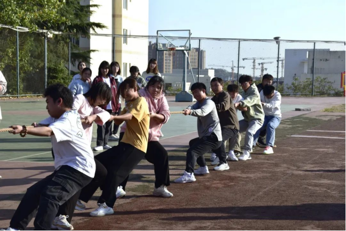 于崂山校区南苑操场举行“凝‘绳’聚力展风采 同心同行向未来”暨秋之实主题拔河比赛。