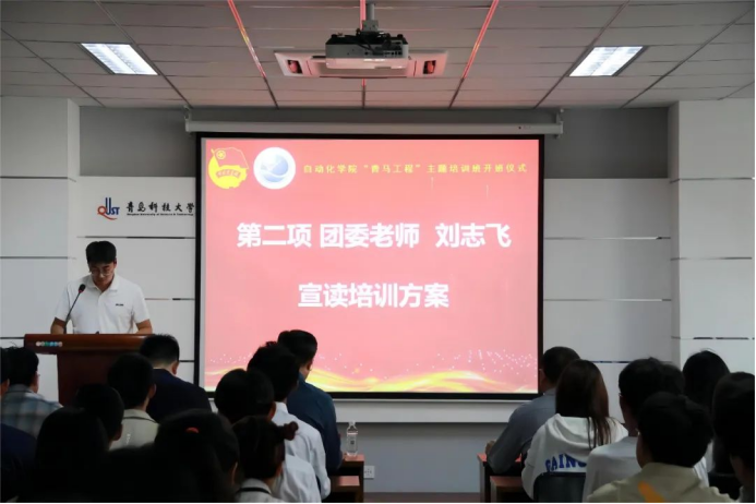 陈兵代表校团委致辞,对学院青马培训班学员提出三点希望:一是全体学员要珍惜学习机会,端正学习态度,在“学”字上下苦功夫,不断提高自身软实力;二是要严守培训纪律,发挥引领作用。在学习过程中仔细钻研,刻苦向上,树立起“自”家青年的良好风貌,同时充分发挥好自身榜样典型和示范引领作用;三是要坚持实学实干、做到知行合一。能够把在青马工程培训班中学到的知识内容运用到日常的学习生活中,写好“自”家青年服务学校共青团“守正创新强特色、挺膺担当走在前”的“奋进之笔”。