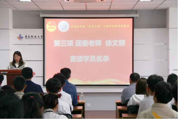 学院团委老师徐文丽宣读培训班学员名单。学院依据有关规定和要求,本着公平、公正、公开的原则,经申报、推荐、综合考察等多轮环节,最终确定90名学员参与此次培训班。