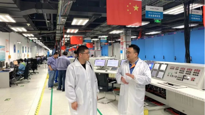 在中广核北京广利核系统工程有限公司中关村永丰产业园区,马寒与公司总经理助理裴红伟和测试中心、人力资源相关负责人举行座谈,就学生就业、企业招聘和校企合作进行深入交流。公司测试与验证中心主任工程师、学院03级校友张旭介绍了公司基本情况,并陪同马寒参观了公司核级仪控系统研发中心、生产制造车间和测试大厅。