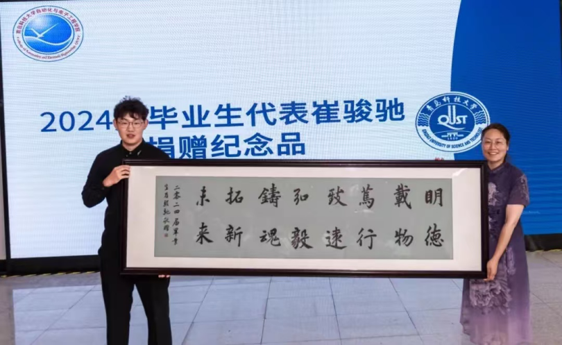 欢送会上,李卉代表学院接受了2024届毕业生代表崔骏驰捐赠的书法纪念品。毕业生们依次登上舞台,用一首首歌曲倾诉着大学时光的点点滴滴。从激昂的励志金曲到舒缓的抒情民谣,每一个音符都饱含着他们对校园生活的眷恋、对师恩的感激以及对未来的憧憬。
